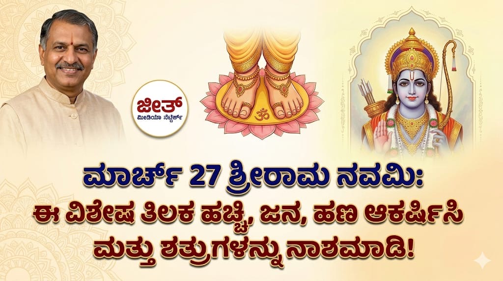 ಅದೃಷ್ಟದ ತಿಲಕ ತಯಾರಿಸುವ ವಿಧಾನ ಸರಳವಾದರೂ ಶಕ್ತಿಯುತವಾಗಿದೆ. ಈ ವಿಧಾನವನ್ನು ಶ್ರೀ ರಾಮನವಮಿಯ ದಿನ ಬೆಳಿಗ್ಗೆ ಸ್ನಾನ ಮತ್ತು ಪೂಜೆಯ ನಂತರ ಅನುಸರಿಸಿದರೆ, ಜನ ಆಕರ್ಷಣೆ, ಹಣದ ಆಕರ್ಷಣೆ ಮತ್ತು ಶತ್ರುನಾಶಕ್ಕೆ ಸಹಕಾರಿ ಎಂದು ನಂಬಲಾಗಿದೆ. ಈ ಲೇಖನದಲ್ಲಿ ತಿಲಕ ತಯಾರಿಸುವ ಸಂಪೂರ್ಣ ಕ್ರಮ, ಹಚ್ಚುವ ವಿಧಾನ, ಸಮಯ ಮತ್ತು ವಿಶೇಷ ಲಾಭಗಳು ವಿವರವಾಗಿ ನೀಡಲಾಗಿದೆ. ಜೀತ್ ಮೀಡಿಯಾ ನೆಟ್ವರ್ಕ್ನ ಖ್ಯಾತ ಜ್ಯೋತಿಷಿ ಶ್ರೀ ಸುಧೀಂದ್ರ ದೇಶ್ಪಾಂಡೆ ಗುರೂಜಿ ಮಾರ್ಗದರ್ಶನದಲ್ಲಿ ಈ ವಿಧಾನವನ್ನು ಅನುಸರಿಸಿ ಧನಾತ್ಮಕ ಬದಲಾವಣೆ ಮತ್ತು ಯಶಸ್ಸನ್ನು ಪಡೆಯಿರಿ.