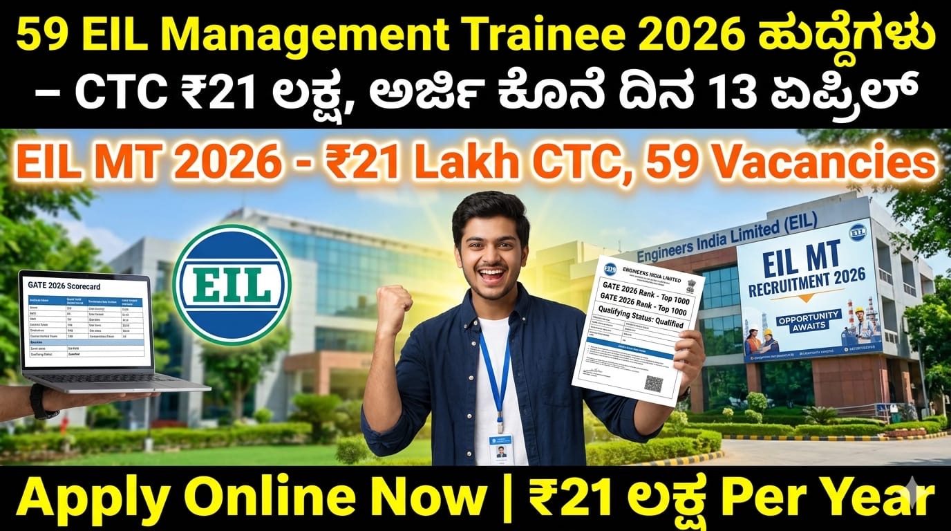 EIL Management Trainee 2026 – 59 ಹುದ್ದೆಗಳು, ₹21 ಲಕ್ಷ CTC! ಈಗಲೇ ಅರ್ಜಿ ಸಲ್ಲಿಸಿ”