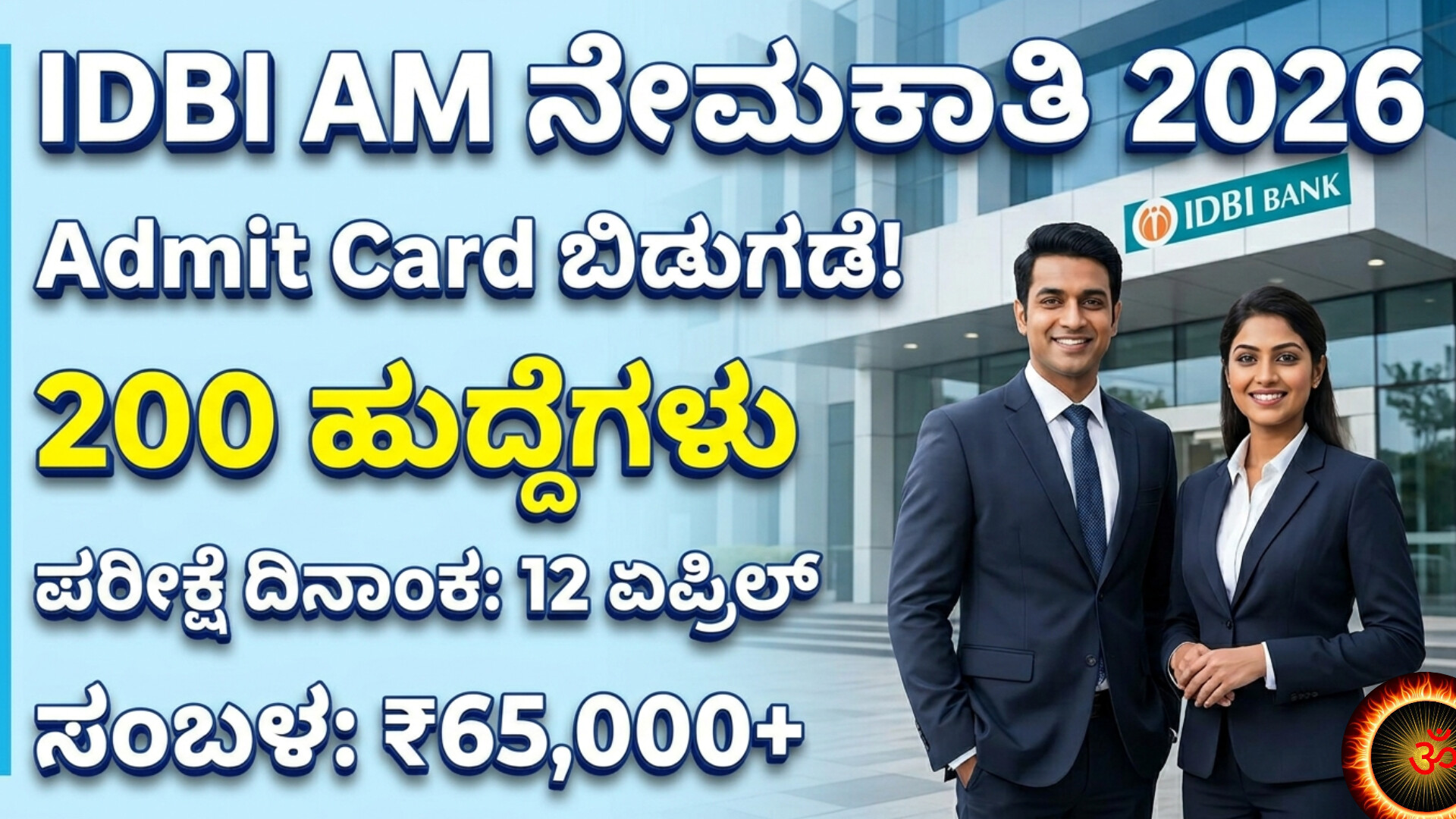 IDBI ಸಹಾಯಕ ವ್ಯವಸ್ಥಾಪಕ ನೇಮಕಾತಿ 2026 ಅನುಭವ ಹೊಂದಿದ ಬ್ಯಾಂಕಿಂಗ್ ವೃತ್ತಿಪರರಿಗೆ ಉತ್ತಮ ಅವಕಾಶವಾಗಿದೆ. 200 ಹುದ್ದೆಗಳು, ₹48,480 ಆರಂಭಿಕ ವೇತನ ಮತ್ತು ನೆಗೆಟಿವ್ ಮಾರ್ಕಿಂಗ್ ಇಲ್ಲದ ಪರೀಕ್ಷೆ — ಇದು ಉತ್ತಮ ವೇತನ ಹೆಚ್ಚಳದ ಅವಕಾಶ. 19 ಮಾರ್ಚ್ 2026ರೊಳಗೆ ಅರ್ಜಿ ಸಲ್ಲಿಸಿ ಮತ್ತು 12 ಏಪ್ರಿಲ್ ಪರೀಕ್ಷೆಗೆ ಸಿದ್ಧರಾಗಿ.