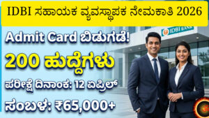 IDBI ಸಹಾಯಕ ವ್ಯವಸ್ಥಾಪಕ 2026: ಪ್ರವೇಶ ಪತ್ರ ಬಿಡುಗಡೆ — 12 ಏಪ್ರಿಲ್ ಪರೀಕ್ಷೆಗೆ ಈಗಲೇ ಡೌನ್ಲೋಡ್ ಮಾಡಿ