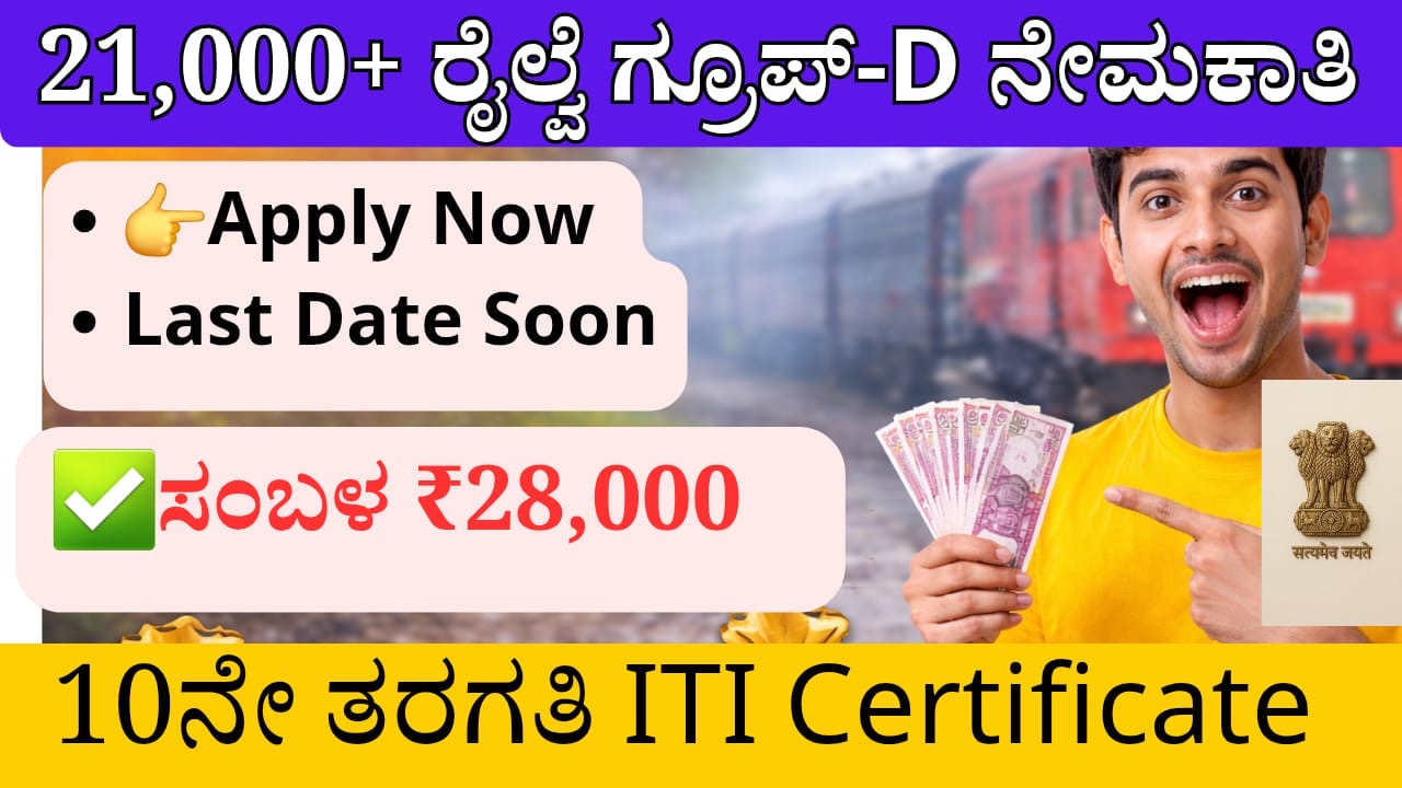 ಭಾರತದಲ್ಲಿ ಸರ್ಕಾರಿ ಉದ್ಯೋಗಕ್ಕಾಗಿ ಕಾಯುತ್ತಿರುವ ಯುವಕರಿಗೆ ಇದೀಗ ದೊಡ್ಡ ಅವಕಾಶ ಬಂದಿದೆ. Railway Group-D Recruitment 2026 ಮೂಲಕ ಭಾರತೀಯ ರೈಲ್ವೆ ಇಲಾಖೆ ಸಾವಿರಾರು ಉದ್ಯೋಗಗಳನ್ನು ಭರ್ತಿ ಮಾಡಲು ಸಿದ್ಧವಾಗಿದೆ. ಈ ನೇಮಕಾತಿಯನ್ನು Indian Railways ಅಡಿಯಲ್ಲಿ ಕಾರ್ಯನಿರ್ವಹಿಸುವ Railway Recruitment Board (RRB) ನಡೆಸಲಿದೆ.
