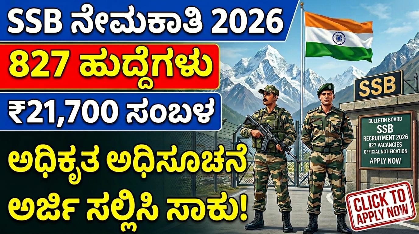 SSB ಕಾನ್ಸ್ಟೇಬಲ್ ಟ್ರೇಡ್ಸ್ಮನ್ ನೇಮಕಾತಿ 2026ಗಾಗಿ ಕೇಂದ್ರ ಸರ್ಕಾರದಿಂದ ಅಧಿಕೃತ ಅಧಿಸೂಚನೆ ಪ್ರಕಟವಾಗಿದೆ. ರಕ್ಷಣಾ ವಲಯದಲ್ಲಿ ಸರ್ಕಾರಿ ಉದ್ಯೋಗ ಹುಡುಕುತ್ತಿರುವ ಅಭ್ಯರ್ಥಿಗಳಿಗೆ ಇದು ಉತ್ತಮ ಅವಕಾಶವಾಗಿದೆ.