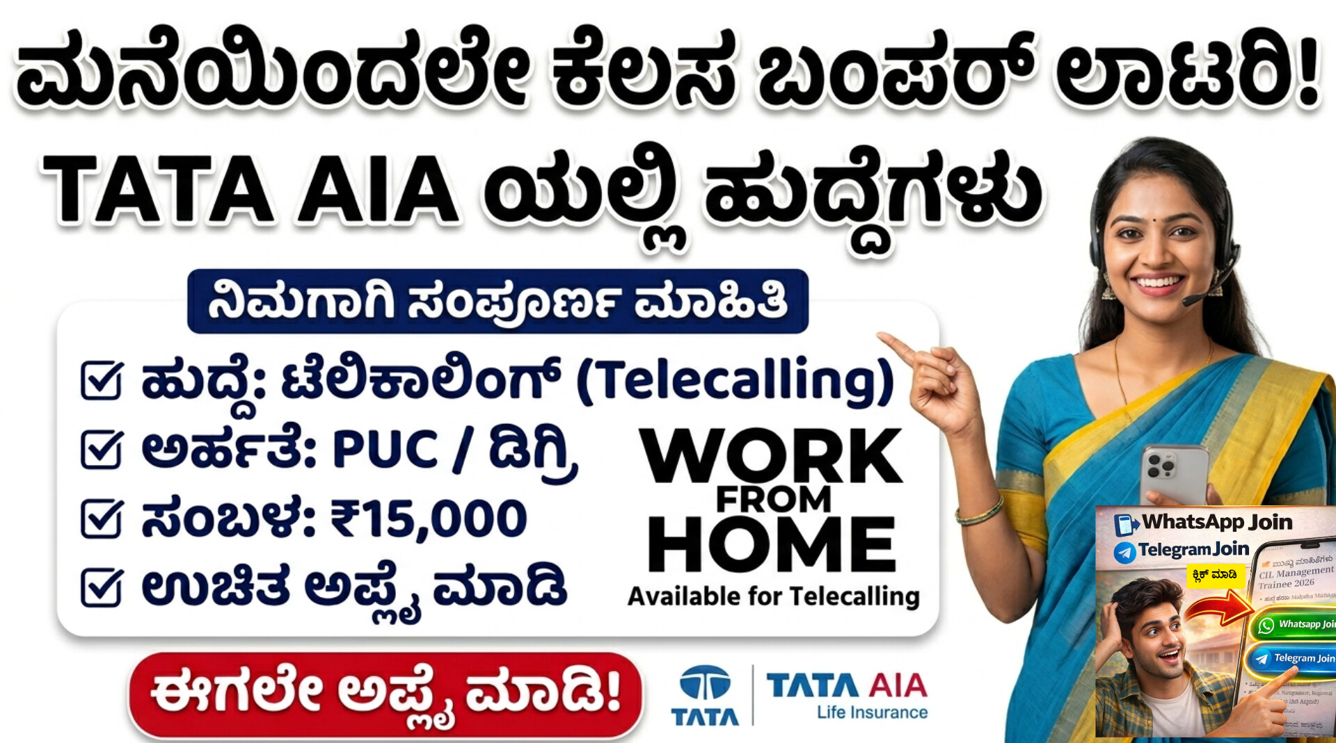 TATA AIA Telecalling Jobs Recruitment 2026TATA AIA ಟೆಲಿಕಾಲಿಂಗ್ ಕೆಲಸದ ಸಂಪೂರ್ಣ ವಿವರ